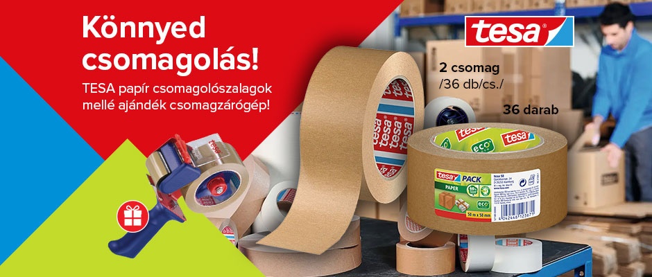 Vásároljon 2 csomag TESA „tesapack® 4713” vagy 36 db TESA „tesapack® 57180”csomagolószalagot, és egy TESA csomagzárógépet adunk ajándékba.