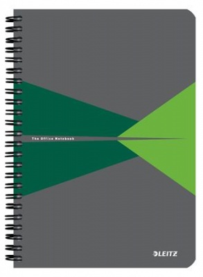 Spirálfüzet, A5, vonalas, 90 lap, laminált karton borító, LEITZ "Office", szürke-zöld